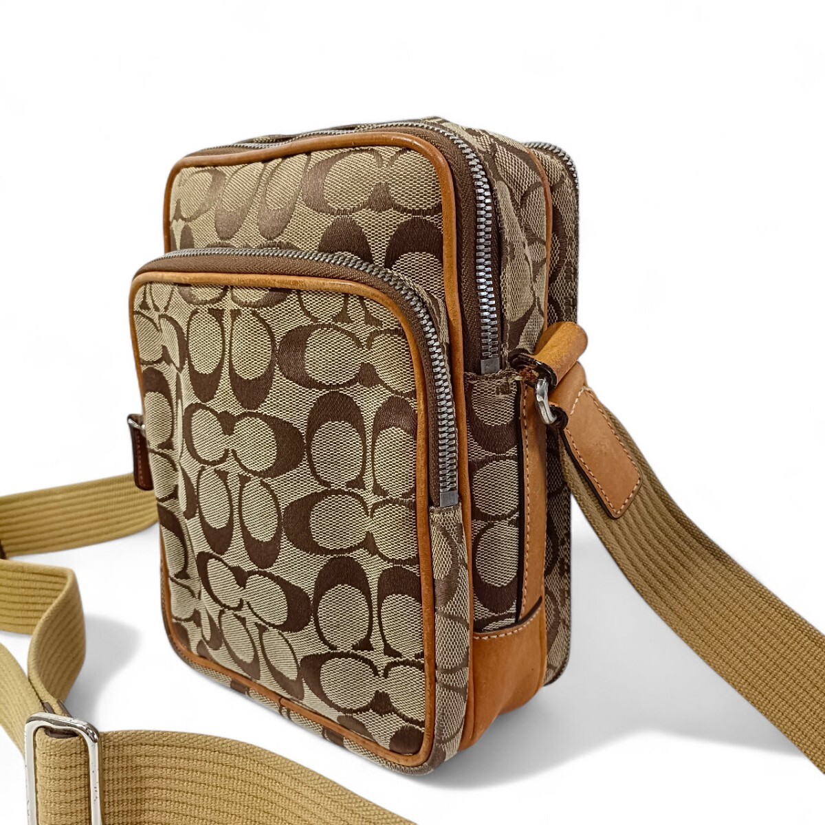 > 正規品 コーチ COACH ショルダーバッグ サコッシュ シグネチャー 鞄 ポシェット かばん ベージュ ブラウン キャンバス 男女兼用 多収納