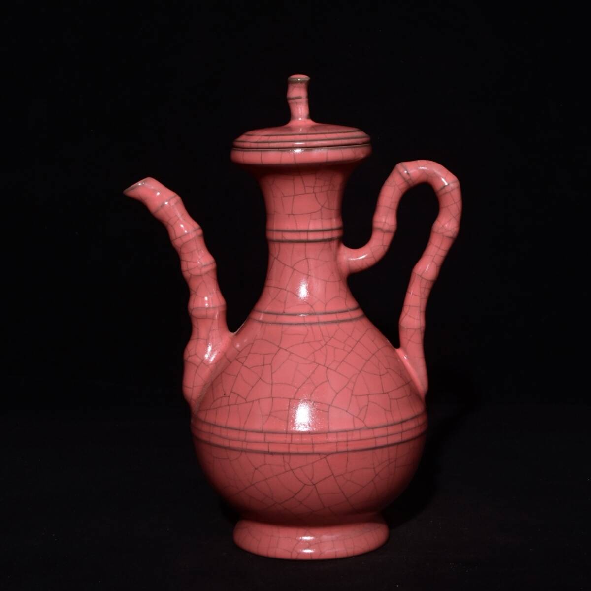 > 9_ZZ9304 【惠】人間国宝 中国骨董 陶芸 磁器【宋汝窯紅釉執壺】工芸品 施釉陶 青花磁 陶芸 置物 收藏品