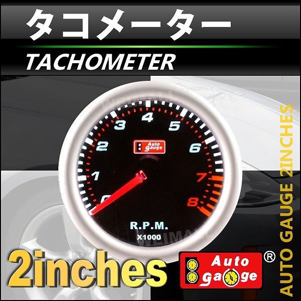> オートゲージ 計器 タコメーター 2インチ パーツ一式付 ブラックフェイス 1~10気筒対応 autoguage 02INTA0