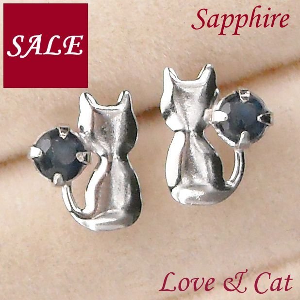 - サファイア ピアス 天然石 プラチナ 9月誕生石 レディース 50代 40代 60代 30代 20代 猫 ねこ ネコ アニマル 一粒 pt900 妻 彼女 ギフト