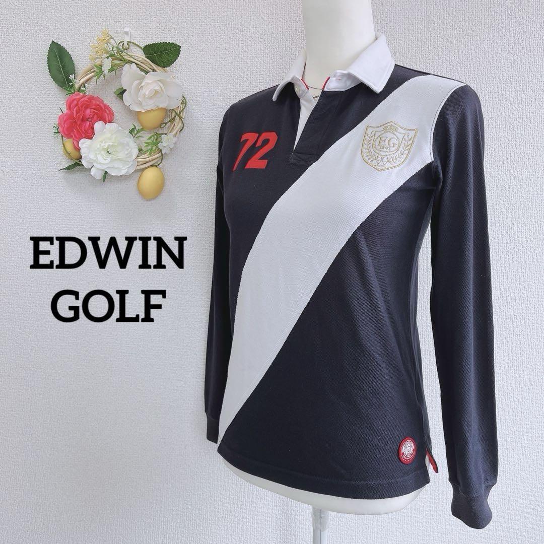 > ☆フィット☆ EDWIN GOLF エドウィンゴルフ 長袖ポロシャツ エンブレム ワッペン ネイビー S