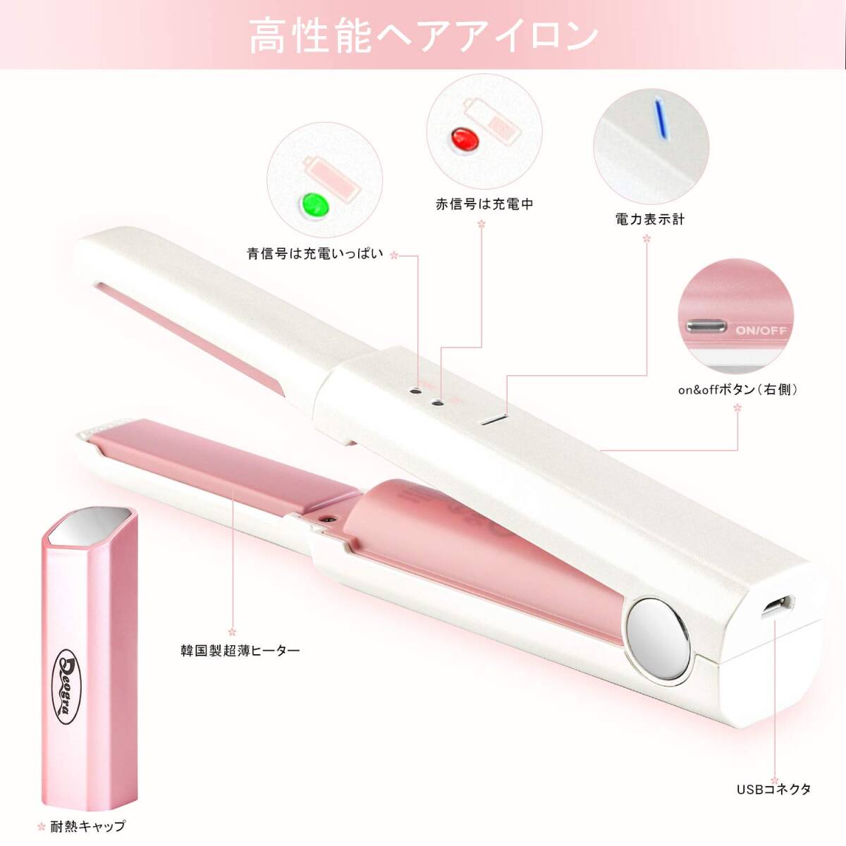 - ☆2in1コードレスヘアアイロンマイナスイオン&PH加熱、旅行用