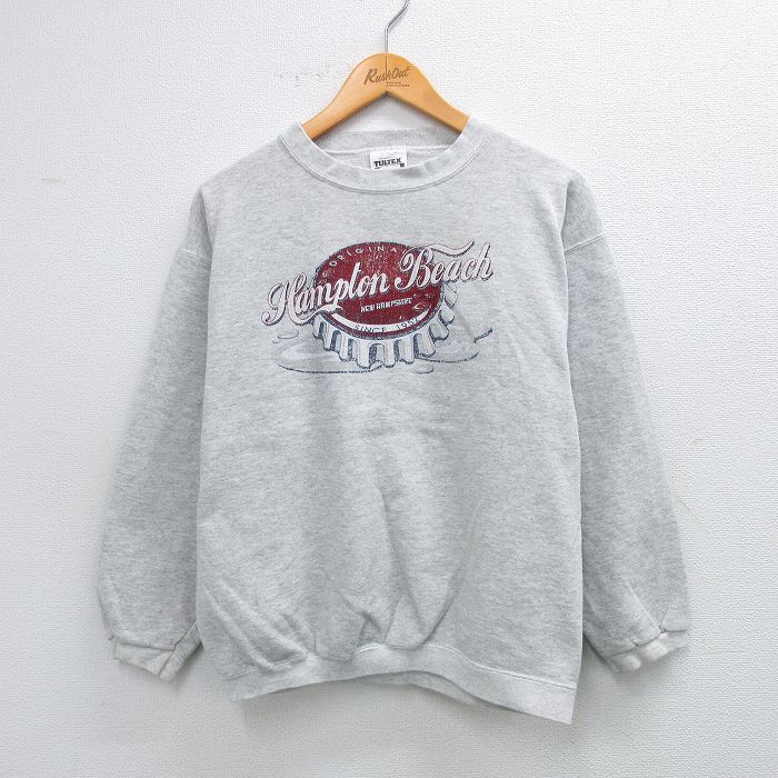 > M/古着 TULTEX 長袖 スウェット メンズ 90s Hampton クルーネック 薄グレー 霜降り 25sep18 中古 スエット トレーナー トップス