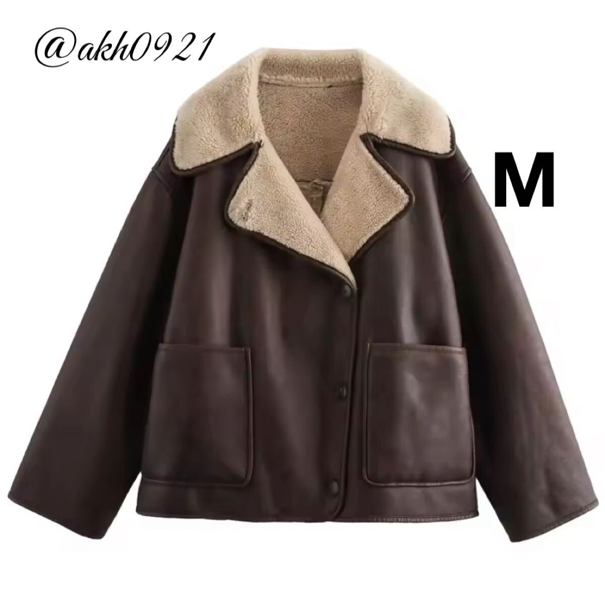> 新品未使用★2025 A/W 秋新作★vintage ヴィンテージ レトロ brown ボア ムートンコート アウター Mサイズ レディース★ZARA 好きな方に