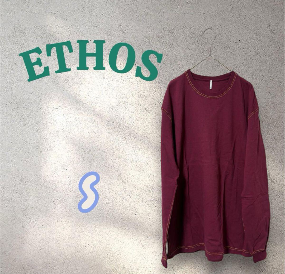 - 日本製 ETHOS エトス バーガンディ デザイン 長袖カットソー S