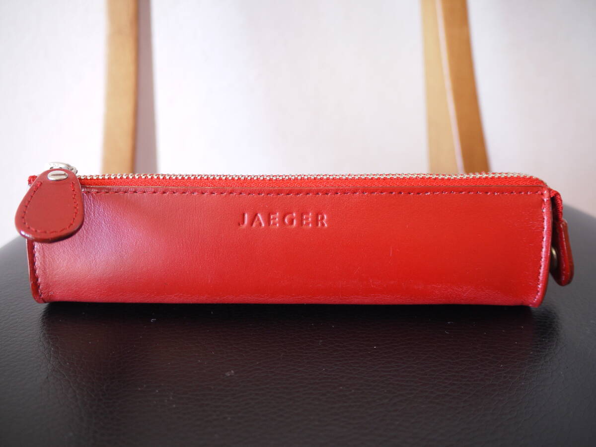 - JAEGER イエーガー ペンケース レザー 箱付き レッド 未使用