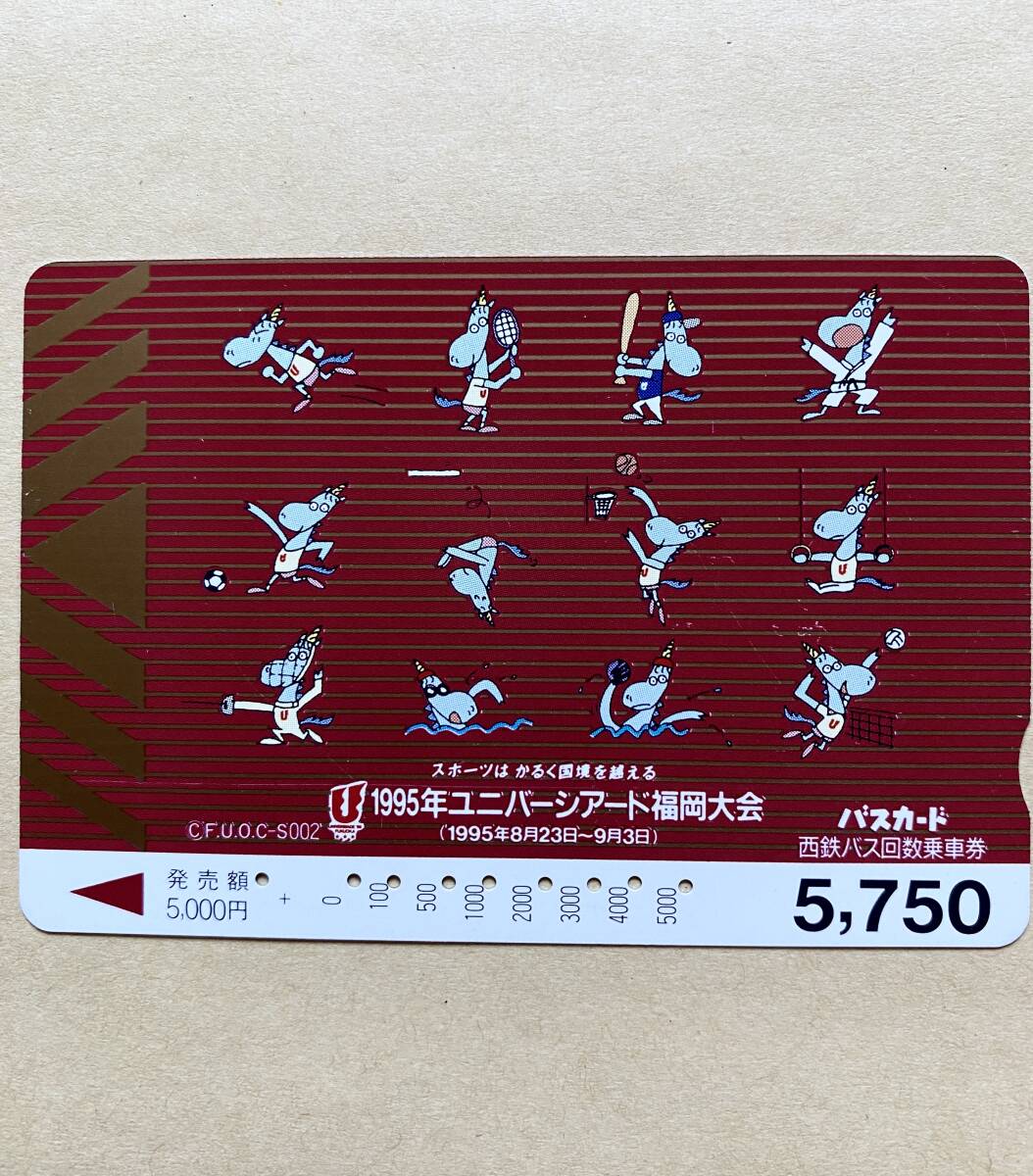 - 【使用済】 バスカード 西鉄バス 1995年 ユニバーシアード福岡大会 カパプー