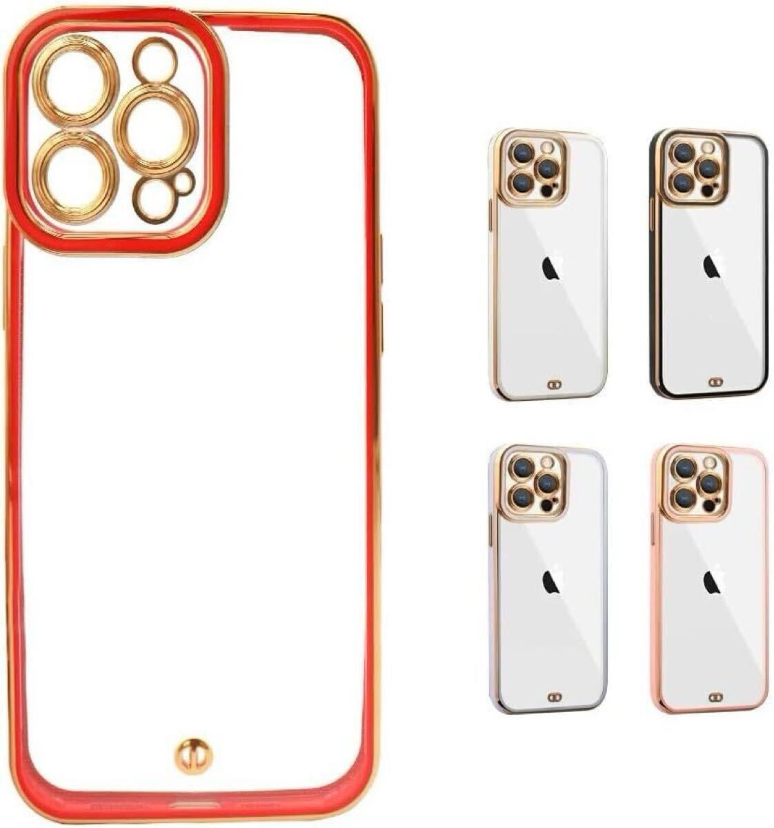- iPhone 13 Pro Max スマホケース カメラ保護 透明 iPhone 13 Pro Max 用 TPU保護ケース メッキ加工 薄型 軽量 黄変防止 耐衝撃 色は赤
