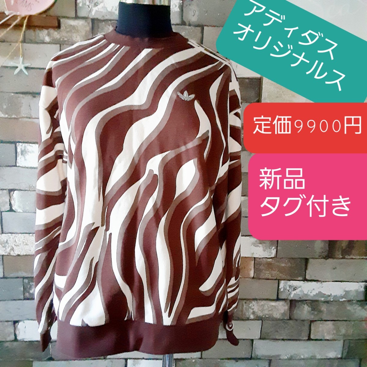 - スウェット トレーナー 茶 ロゴ ストライプ ベージュ アディダスオリジナルス