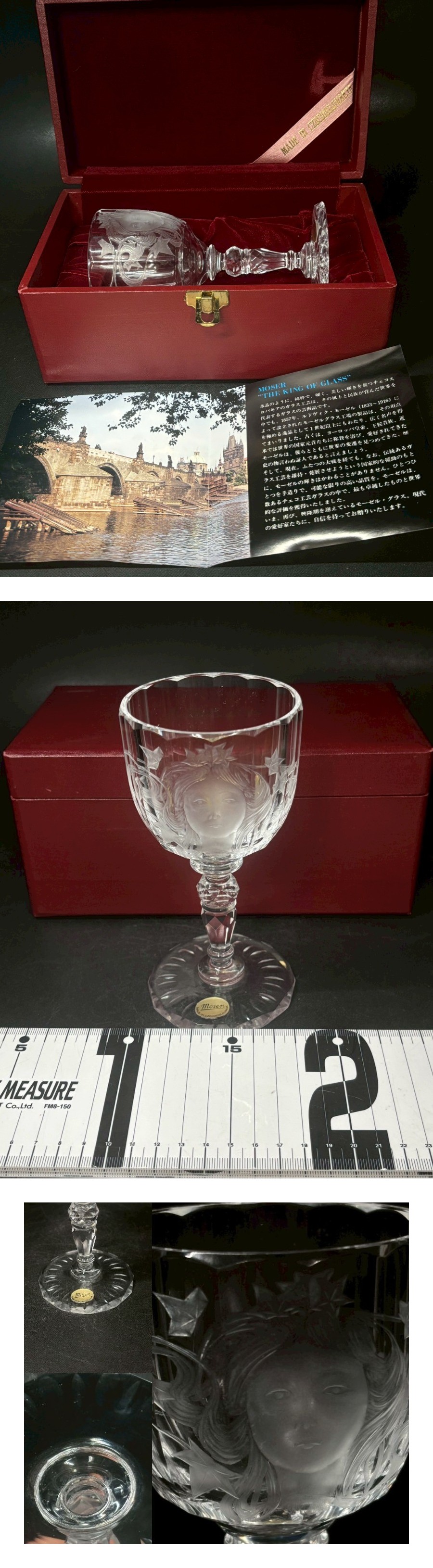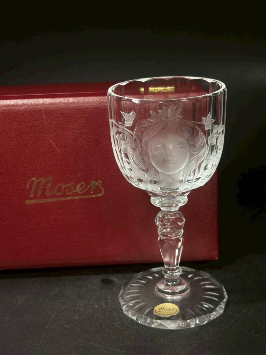 ●moser モーゼル クリスタルワイングラス 箱付 ガラス細工 グラヴィール装飾彫刻 チェコ飾物 希少伝統工芸品