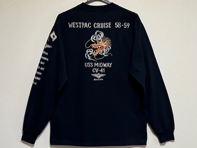 > AVIREX★アヴィレックス◇ウェストパック クルーズ 長袖Tシャツ [783-3130025] L ブラック 美品 *刺繍 ロンT