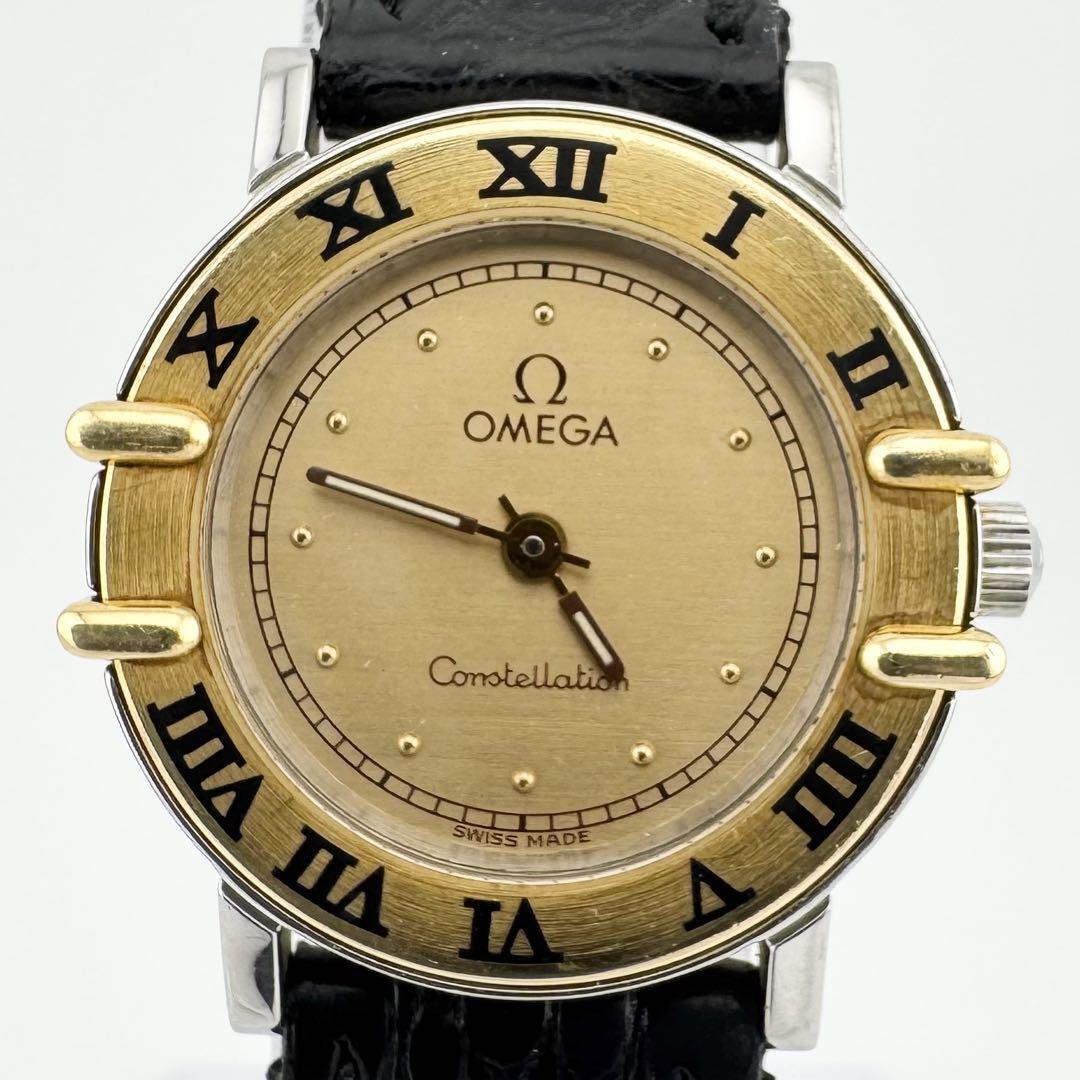 > 状態良好品 OMEGA オメガ コンステレーション ミニ K18ベゼル ゴールド 革ベルト レディース クォーツ 腕時計