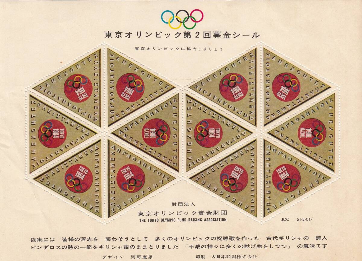 - 1964年東京オリンピック 第2回募金シール 未使用