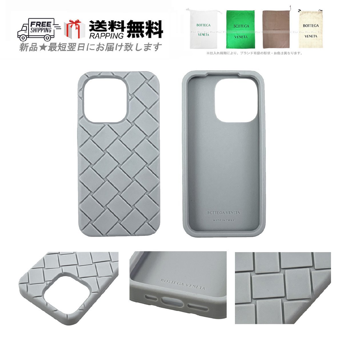 > L832-ST.. BOTTEGA VENETA ボッテガ ヴェネタ iPhone 15 Pro ケース ロゴ シリコン イタリア製 ★ 1501 STERLING