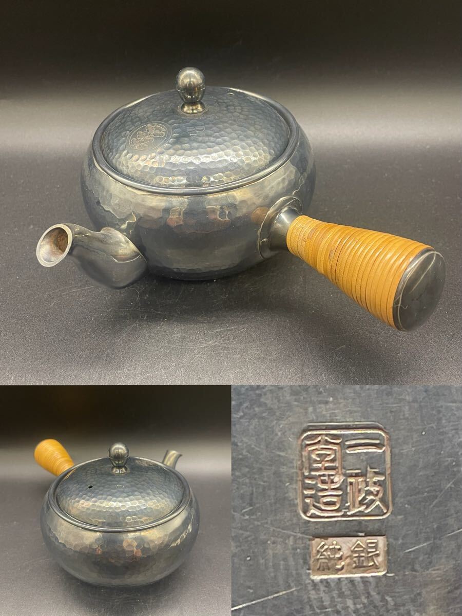 - 純銀 急須【一政堂】製 銀 重量288g 煎茶道具 茶道具 茶器 横手 横手急須 中国美術