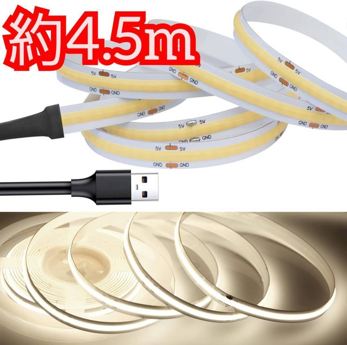 - 送料無料 LEDテープライト USB LEDストリップライト 高密度 約4.5m 320LEDs/m 昼光色4000K DC5V 両面テープ 変形可能切断可能 屋内装飾