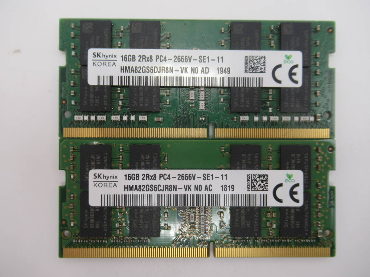 - ◆◇【即決】 SKhynix 16GB 2R*8 PC4-2666Vノートパソコン用メモリ 2枚セット合計 32GB◇◆253213