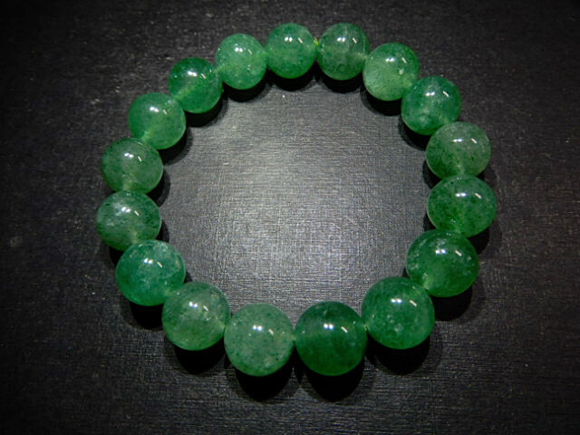 - 高級天然水晶BD7444 ストロベリークオーツ(グリーン) 超極上級美品11.5mm