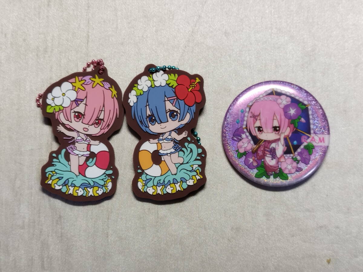 - 中古品 Re:ゼロから始める異世界生活あそーと レム&ラム5 レム/ラム(水着) ラバーマスコット ガシャポンくじ B賞/ラム 缶バッジ