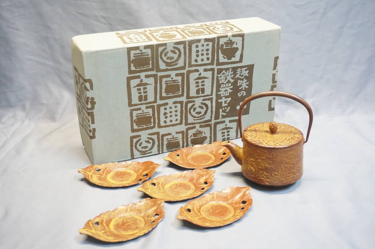 - 趣味の鉄器セット 急須鉄瓶 茶托セット [南部鉄器]【デッドストック】F107