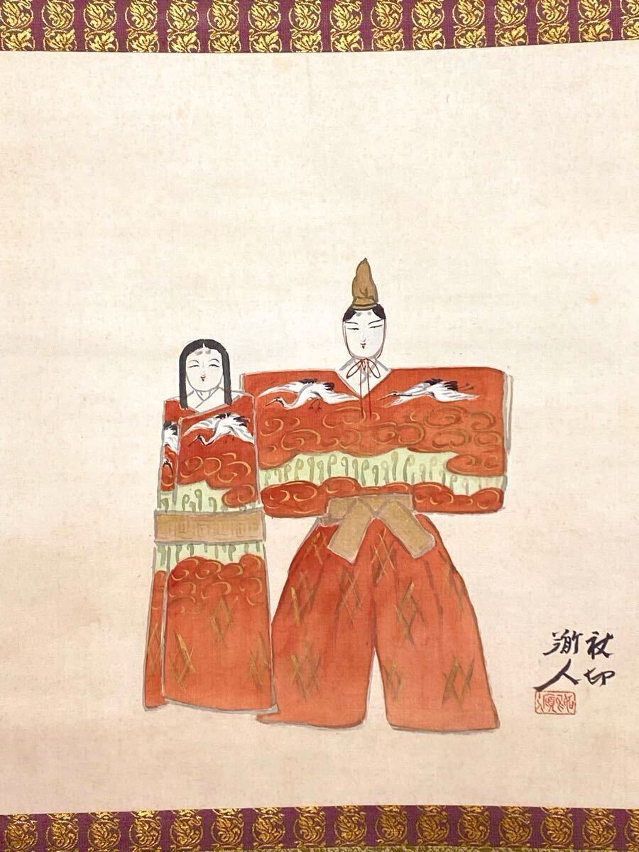- 《魚亀》【模写】河野秋邨 「立雛」絹本 合箱 田近竹邨師事 日本画 雛人形 ひな祭り南画家 茶掛 茶道具 古美術 掛軸 掛け軸 人が書いたもの