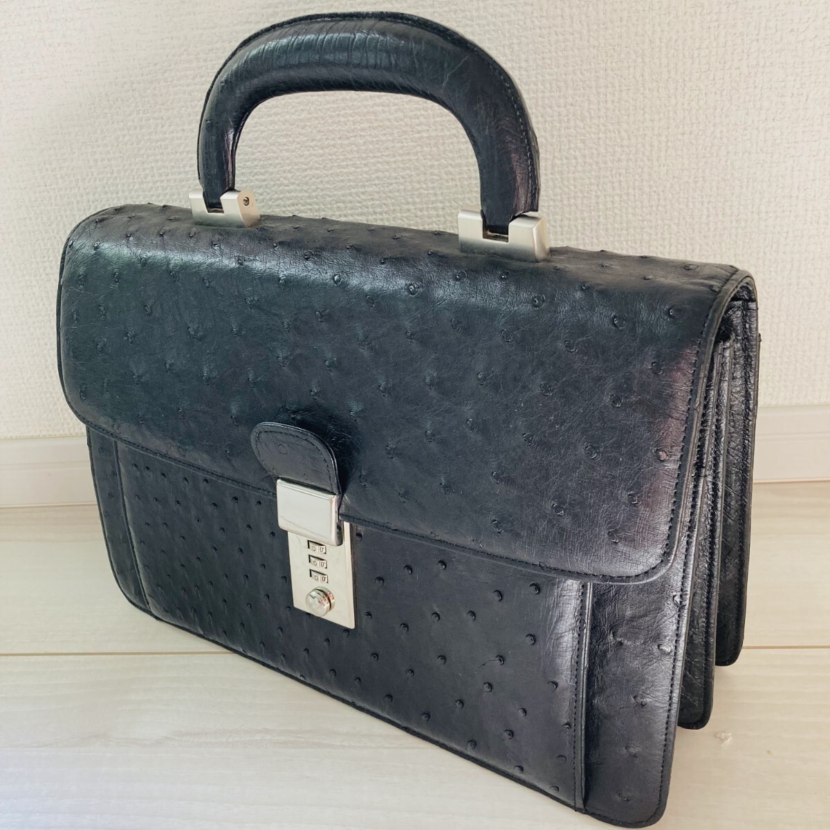 - ★即決★ WEL オーストリッチ ダチョウ 駝鳥 だちょう 日本製 セカンドバッグ ハンドバッグ BK ブラック 黒 SV金具 ダイヤルロック