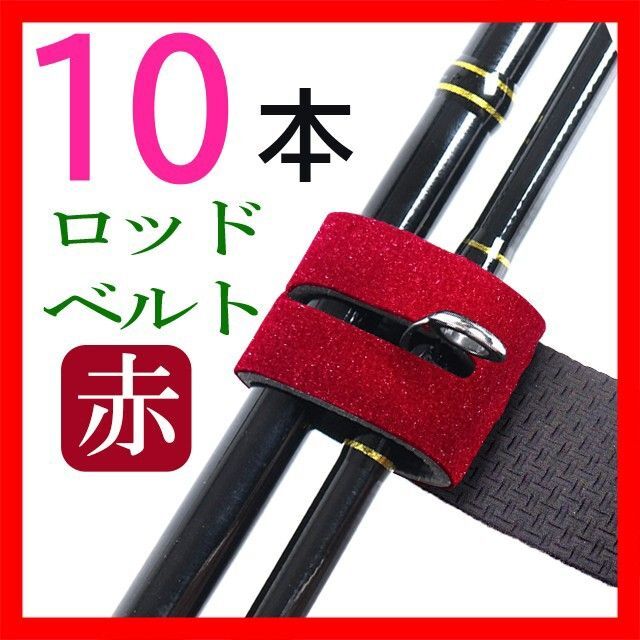 - ロッドベルト10本セットまとめ売り釣り竿ベルト 赤 ブラックバス エギング 固定バンド