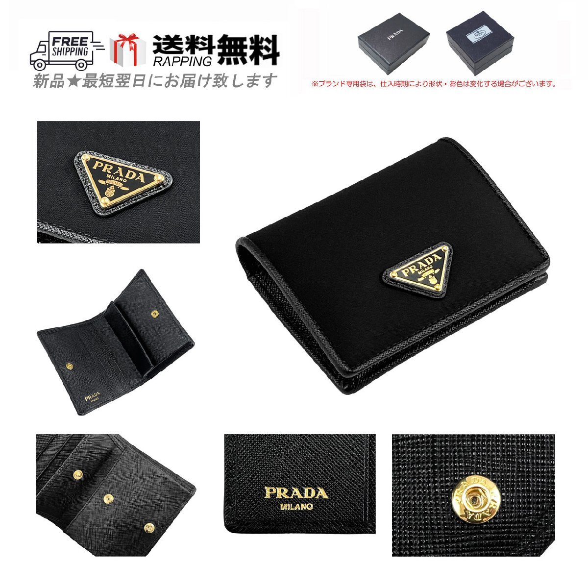 - L764.. PRADA プラダ ミニ 財布 2つ折り コイン カード ナイロン サフィアーノ トライアングル ロゴ 1MV204 UZ0 F0X3X ★ ブラック