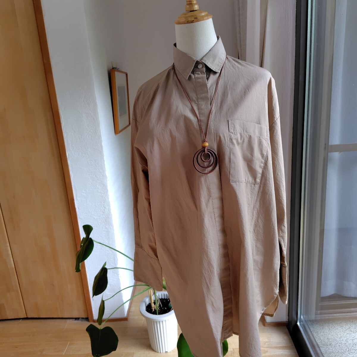 - GU シャツカラー 長袖チュニックワンピース 比翼仕立て ゆったり S カーキ系 美品