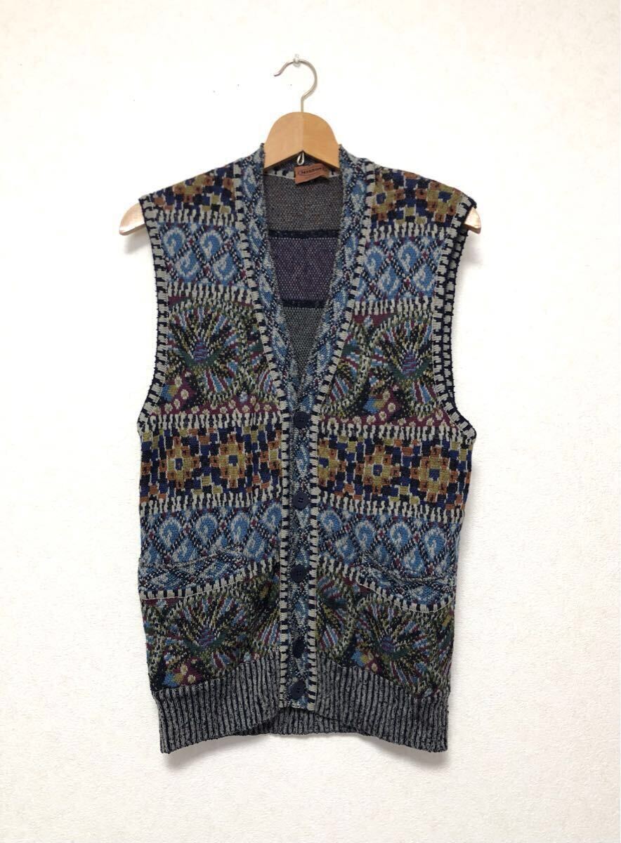 - MISSONI ニット ベスト Vネック イタリア製 カーディガン ウール 総柄 ミッソーニ 42 ヴィンテージ