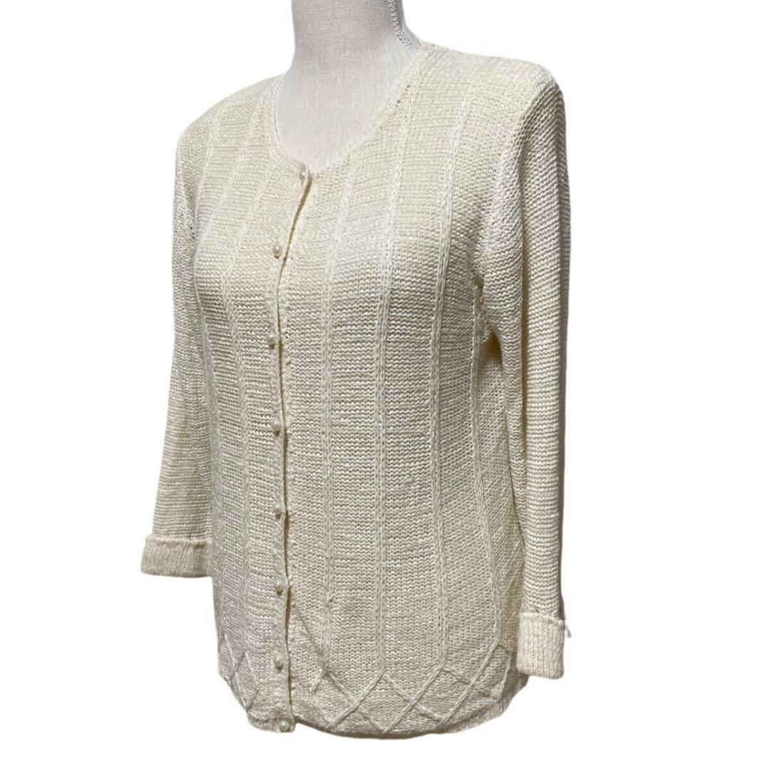- 百合柄 ニットカーディガン Mサイズ 長袖 ボタン付き モダン 昭和レトロ 平成レトロ レディース
