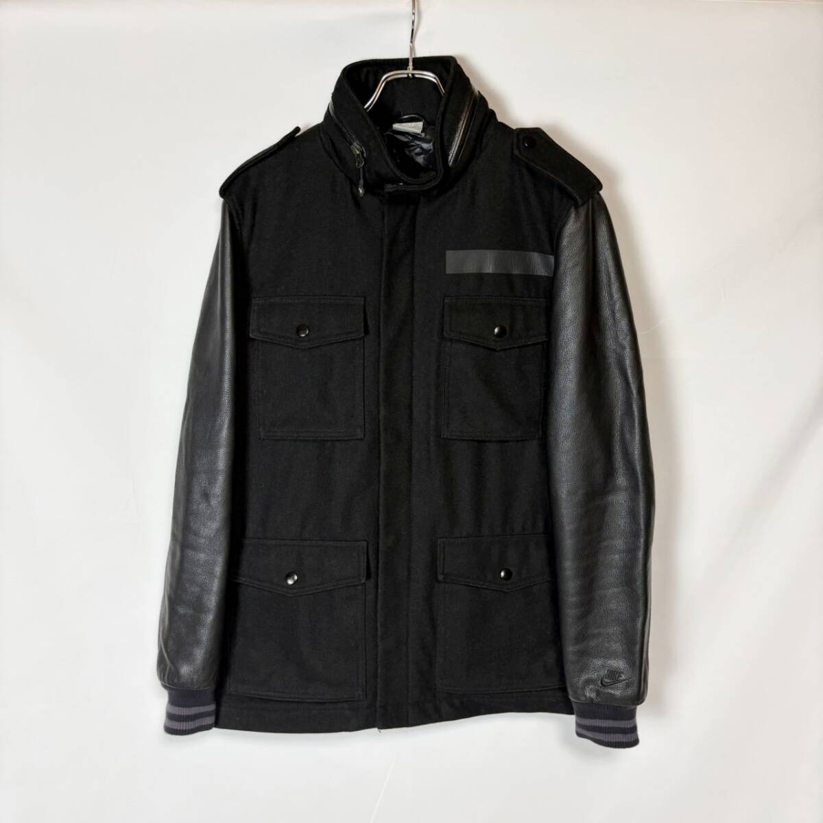 - 良好 NIKE M-65 VARSITY JACKET 512825-010 ナイキ 袖レザー ウール フィールドジャケット バーシティ ミリタリー ブルゾン 牛革 中綿 L