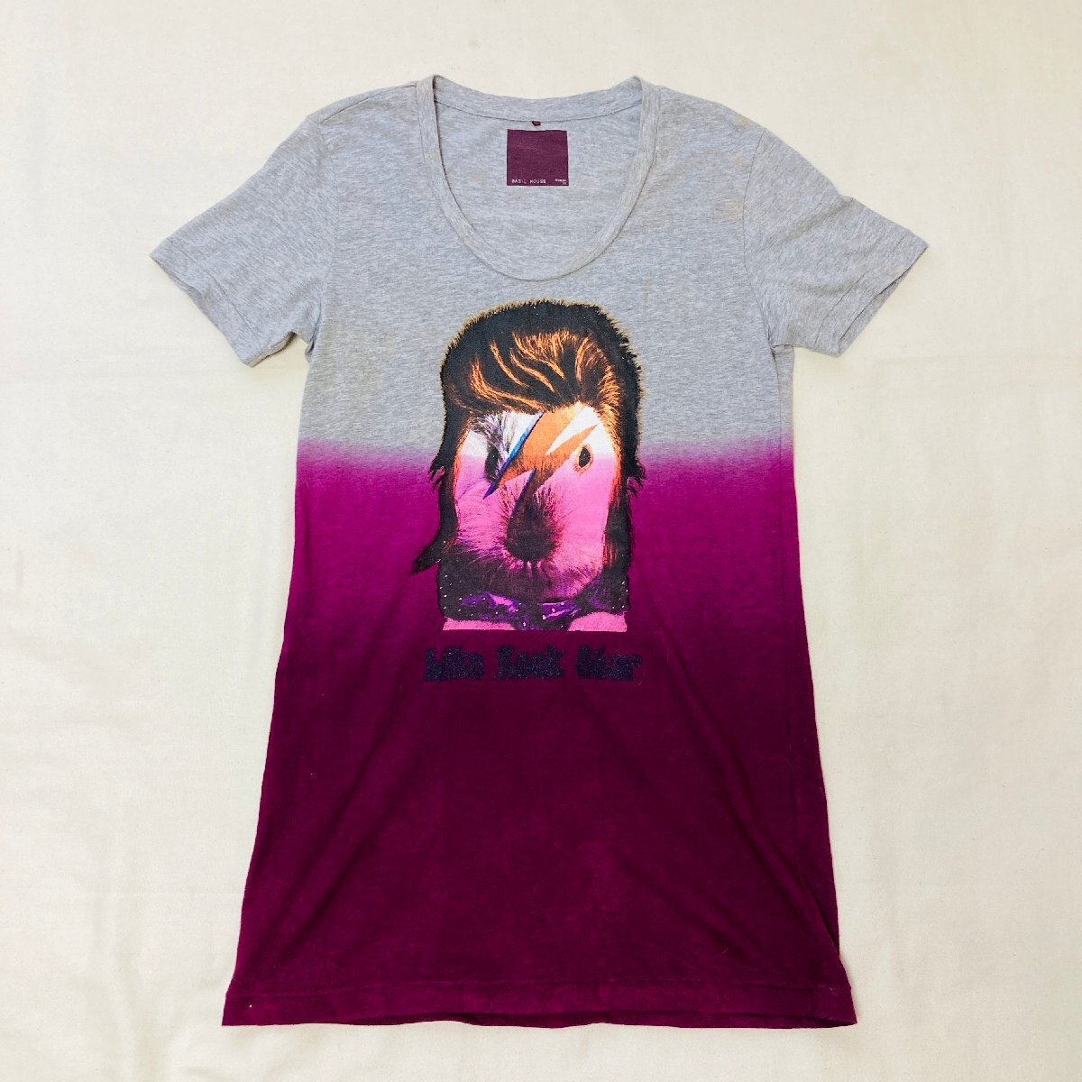 - BASIC HOUSE Like Rock Star プリント Tシャツ グレー/パープル 85