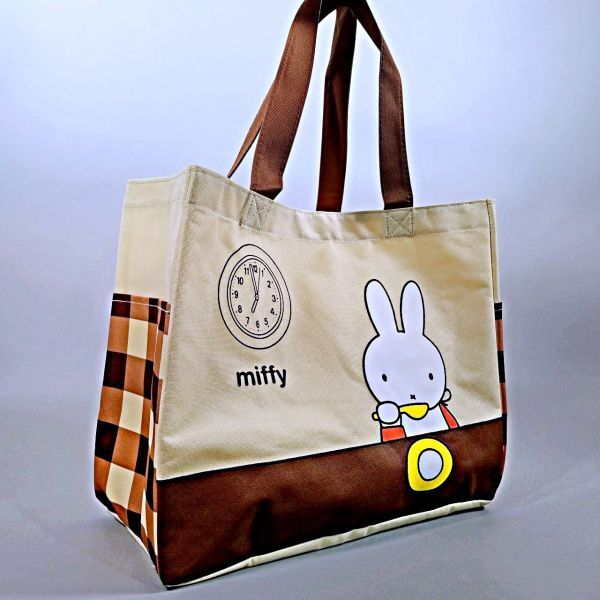 - フジパン ミッフィー miffy 2010年 サイド・インナー ポケット付き チェック de トート バッグ ディナー お食事シーン ディック・ブルーナ