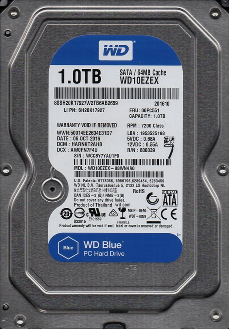 - WesternDigital WD10EZEX-08WN4A0 1.0TB SATA 7200rpm 2060-800039-001 PEV P1