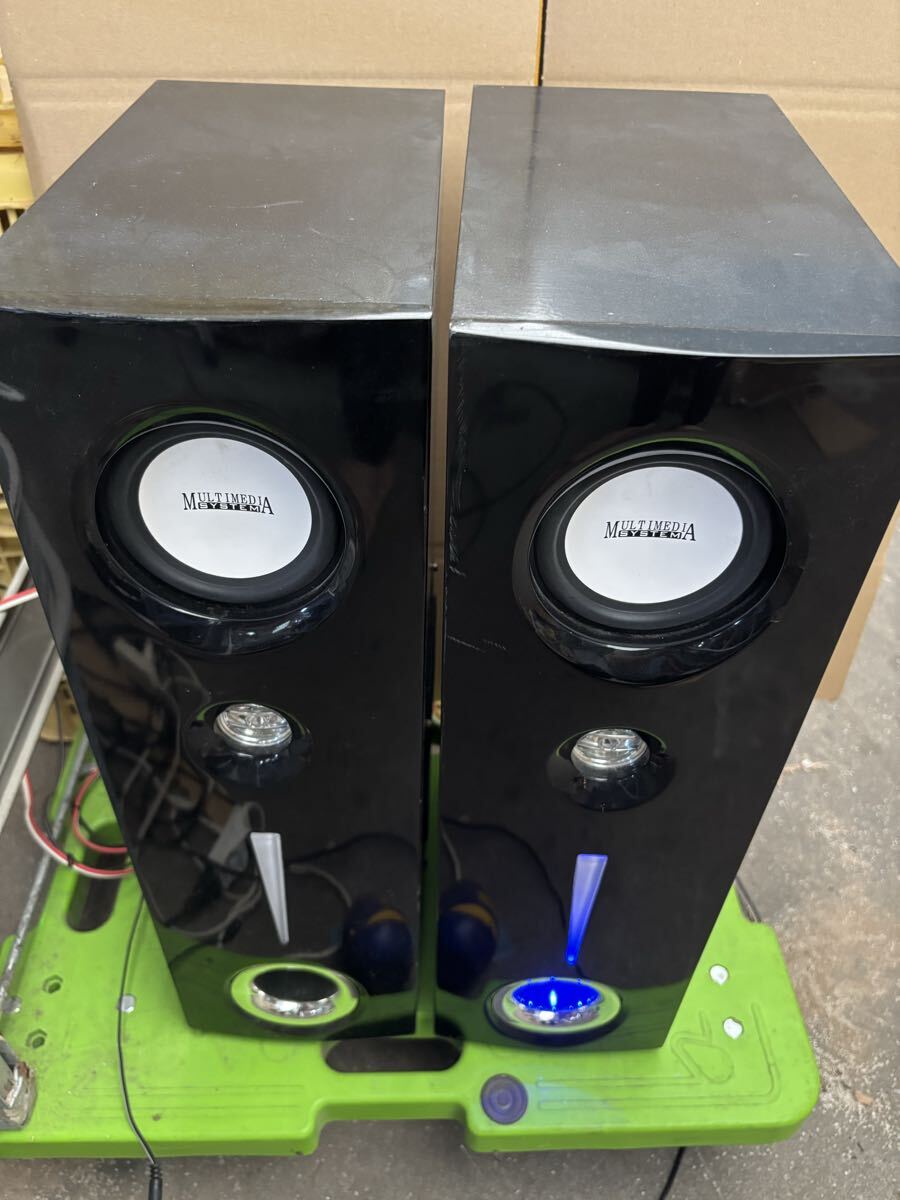 - MODERN PEACE アンプ内蔵スピーカー 2個 MSP-6000 黒 トールボーイ型 マイク入力端子付き 通電確認済み