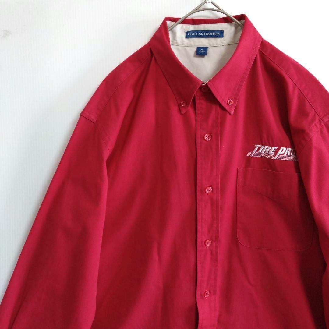- 2519 PORT AUTHORITY 長袖ワークシャツ M 赤 刺繍 US古着
