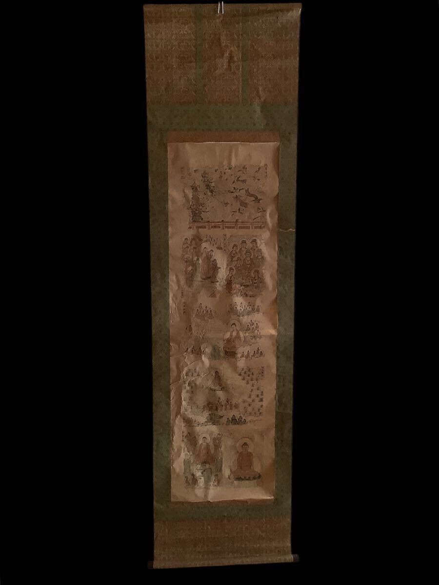- 掛軸Sep787[阿弥陀経絵]紙本版摺 木版画/諸上善人倶会一処 現生護念 諸仏証誠 古書 阿弥陀仏
