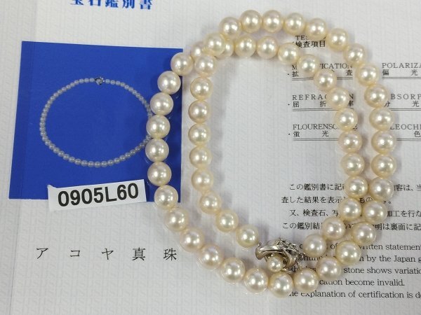 - 0905L60 本真珠 あこや ネックレス 宝石鑑別書付 刻印K14WG 約32.0g