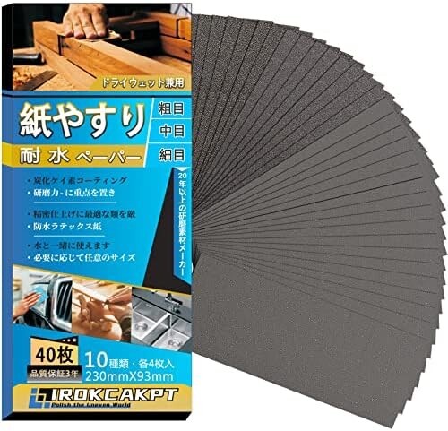 - 【送料無料】IROKCAKPT 紙ヤスリ 木工 サンドペーパー セット(#60~1000番 10種類40枚)紙やすり 耐水ペーパー