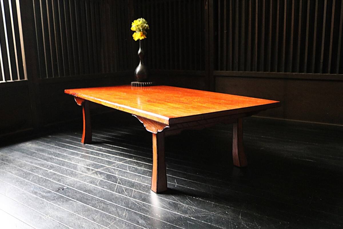 - 【伊董】C130.アンティーク!昭和レトロ!上手!古いテーブル山形県庄内地方長方形型ちゃぶ台総欅昭和 #卓袱台 #和モダン
