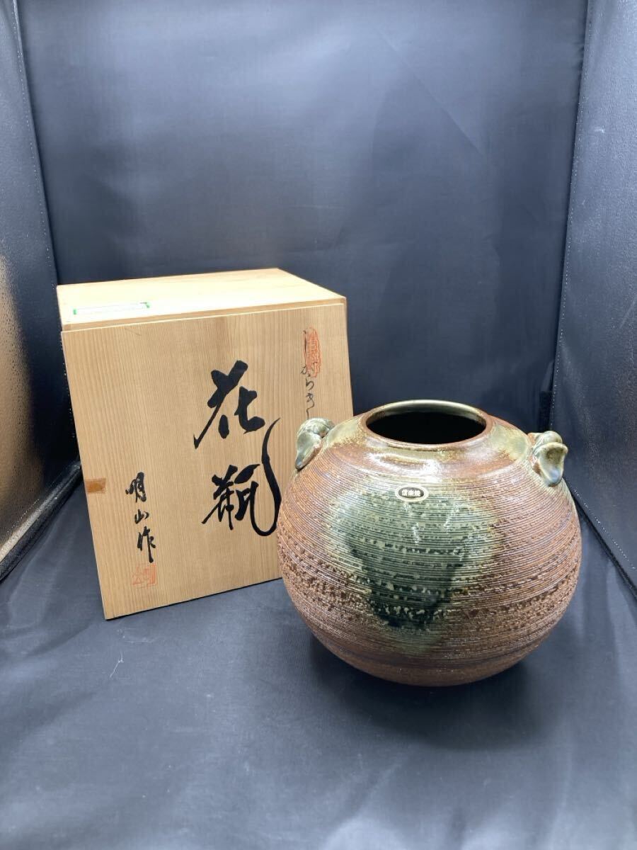 > m0916701-2 信楽焼花瓶 明山作 信楽陶苑 民芸陶器 華道 生け花 和風置物 オブジェ 壺 インテリア装飾 花器 花具 花壺 中古品