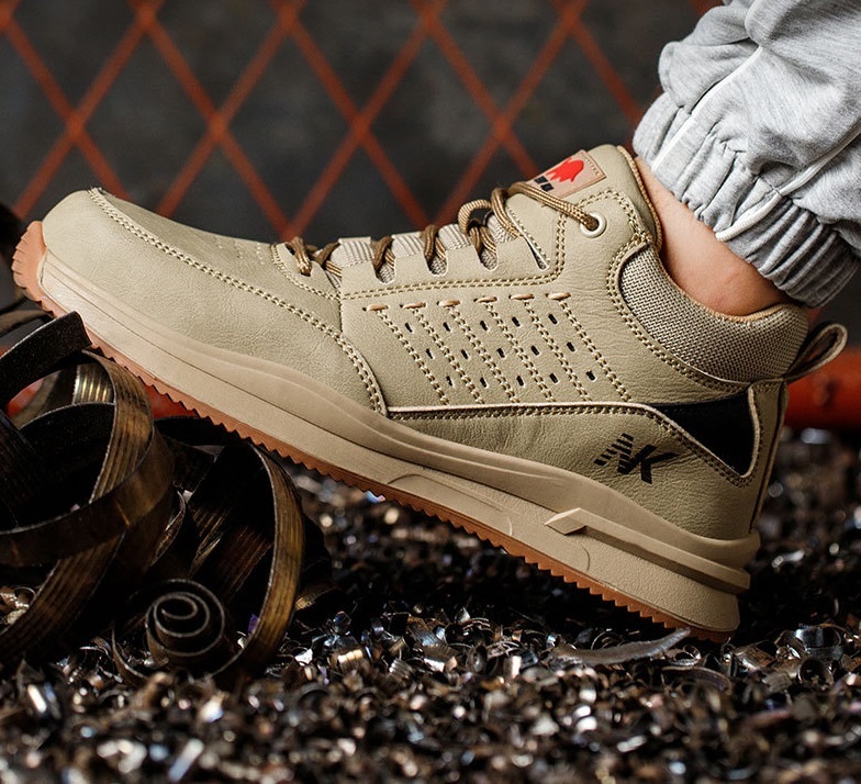 - 安全靴 作業靴 踏み抜き防止 おしゃれ かっこいい セフティーシューズ 安全スニーカー 耐滑 厚底 サイズ:26cm カーキ