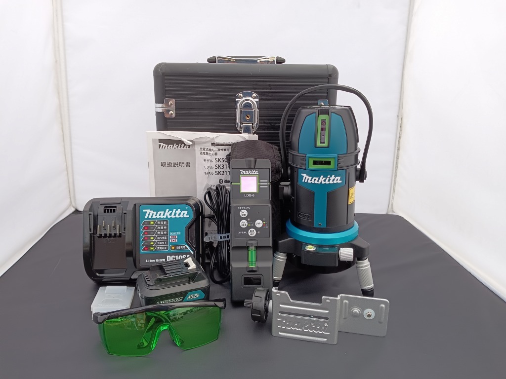 > 中古 makita マキタ 10.8V 充電式屋内・屋外兼用 追尾墨出し器 SK507GD リモコン追尾受光器 LDG-6+エレベーター三脚付