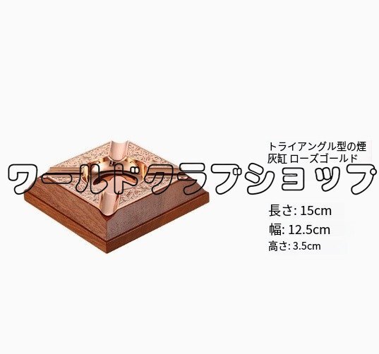 - 高級真鍮×天然木製 シガー灰皿 ワイド溝 耐衝撃 おしゃれ雪茄灰皿 家庭用・業務用対応 ローズゴールド