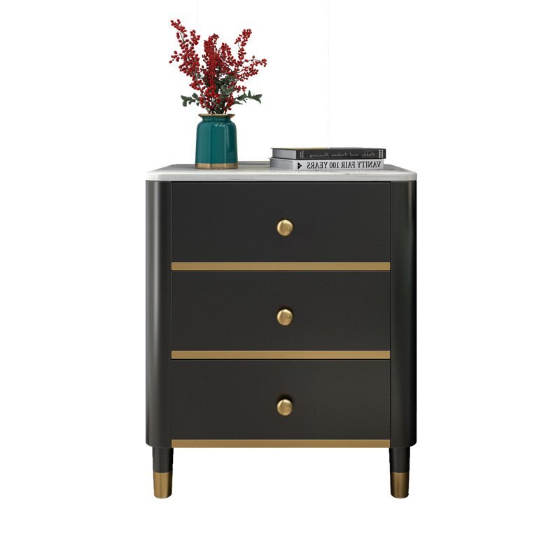 - 高品質スレート天板のベッドサイドテーブル おしゃれ かわいい モダン インテリア 収納キャビネット 引き出しチェスト 無垢材 ブラック