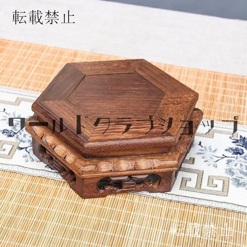 - 木製 六角形ディスプレイ台 花瓶・盆栽・急須・玉器・観賞石用 台座 紅木彫刻工芸品 実木置物スタンド 18cm*5.5cm