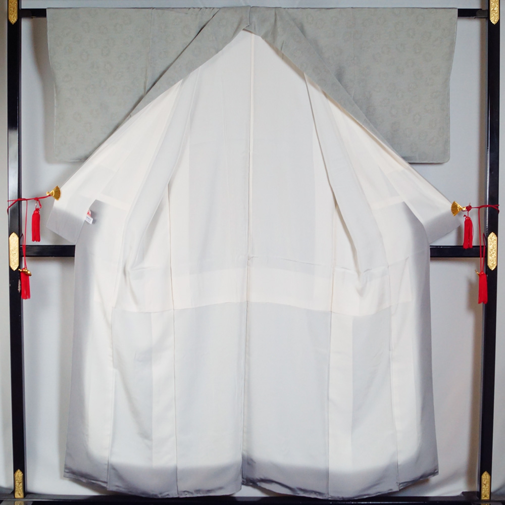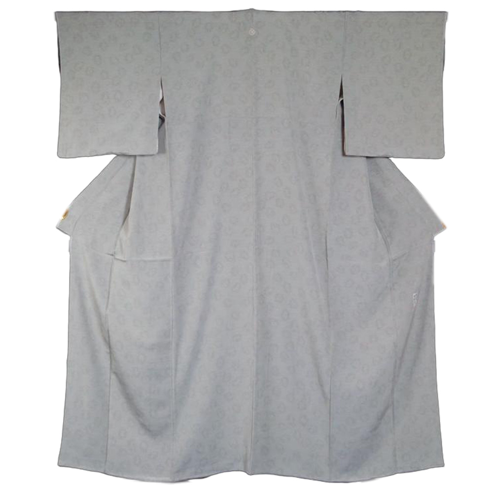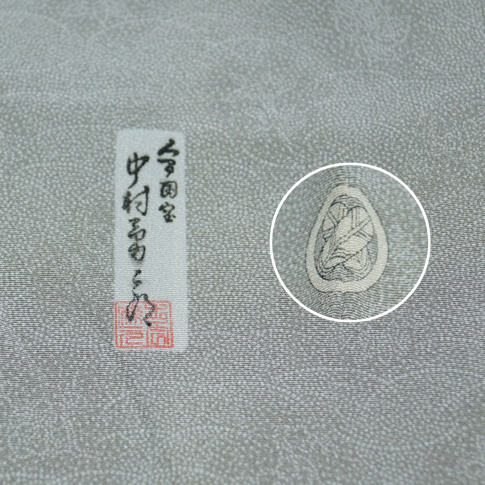 - 江戸小紋 人間国宝 中村勇二郎 芝草に春秋模様 丸に違い鷹の羽紋 Sサイズ 白鼠色系 作家物 落款有り 中古 小紋 リサイクル 着物 きもの天陽