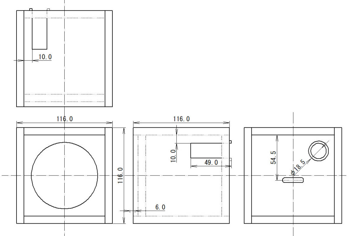 - 【9M1010JU】 9mm厚 MDF キューブ形状 バッフル板奥配置 背面バスレフ型 エンクロージャー 組立 キット