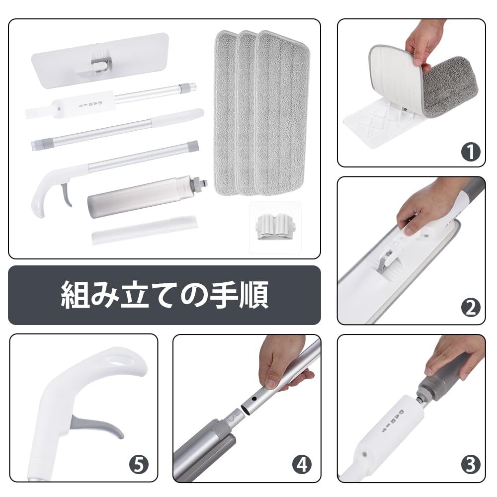 - おすすめ ☆スプレーモップ水拭き 乾湿両用 360°回転 耐久性抜群 コンパクト